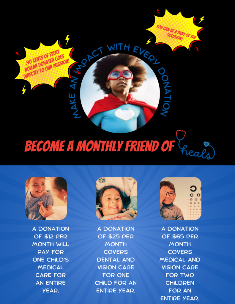 Are you interested in leaving a lasting legacy on your community? The goal of planned giving is to help you plan your legacy in a way that benefits you, your family, and charity. There are several ways you can make these planned gifts to HEALS, Inc., while enjoying both tax and income benefits. Planned giving provides the perfect opportunity to make a simple and lasting impact for generations to come. To learn more about planned giving, click below.